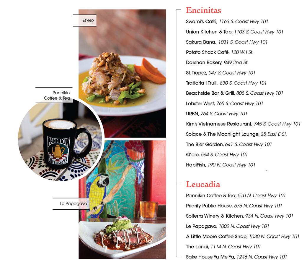 North County’s coastal communities are known for their laid-back surfer vibe and zen-like mindset, but when it comes to dining, while there’s no shortage of beach-town eateries, there is also ample inventory of upscale options to satisfy sophisticated palates. The seaside communities of Solana Beach, Cardiff, Encinitas, Leucadia, and Carlsbad are rife with restaurants sure to please all cravings spanning the elegant to the eclectic, from the sumptuous